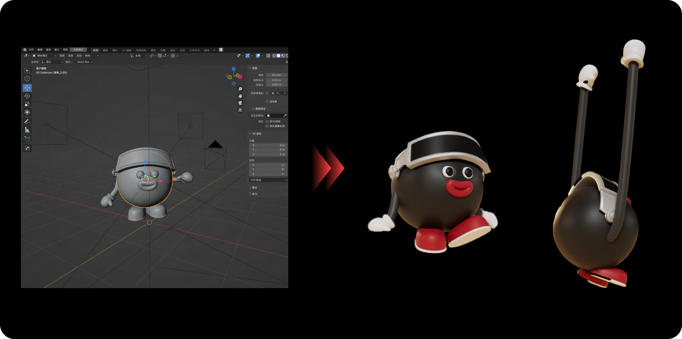 只需把圖丟上去就能迅速摳出畫面主體,非常方便。最后我們要將IP形象霸哥融入進畫面,因為IP形象是特定的,所以在這我們使用三維軟件去進行IP形象動作的調(diào)整。