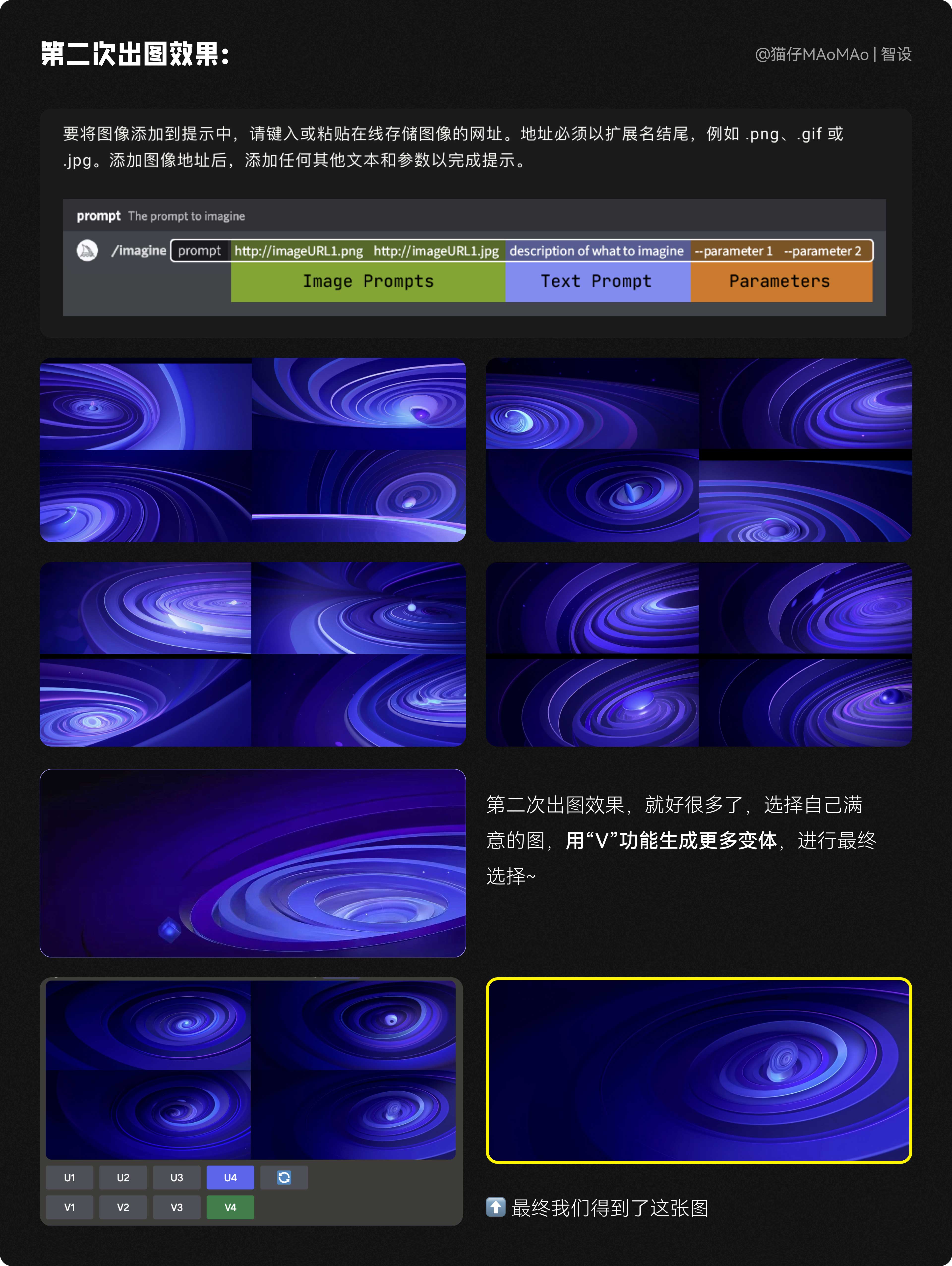 最終關(guān)鍵詞:https://s.mj.run/8rHQ4ehBH-o a black and blue spiral background with blue and blue swirls, in the style of video installation, light purple and purple, pristine geometry, animated gifs, xbox 360 graphics, james turrell, multi-layered figures --iw 2 --v 5.2