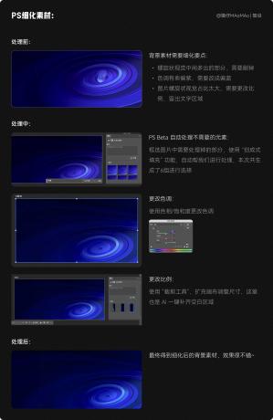 生成的素材我們需要先用 PS 處理一下,背景素材需要處理的地方:主視覺多余的部分需要?jiǎng)h掉、色調(diào)處理、圖片比例修改。
