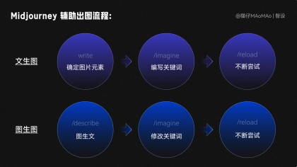 文生圖:顧名思義,需要自己腦暴出關(guān)鍵詞出圖,再通過修改關(guān)鍵詞,不斷踐行嘗試出圖。圖生圖:在有參考圖的情況下,用 /describe 圖生文命令,讓系統(tǒng)直接生成關(guān)鍵詞,再通過修改關(guān)鍵詞,不斷進(jìn)行嘗試;我們先使用這種方式生成背景素材。