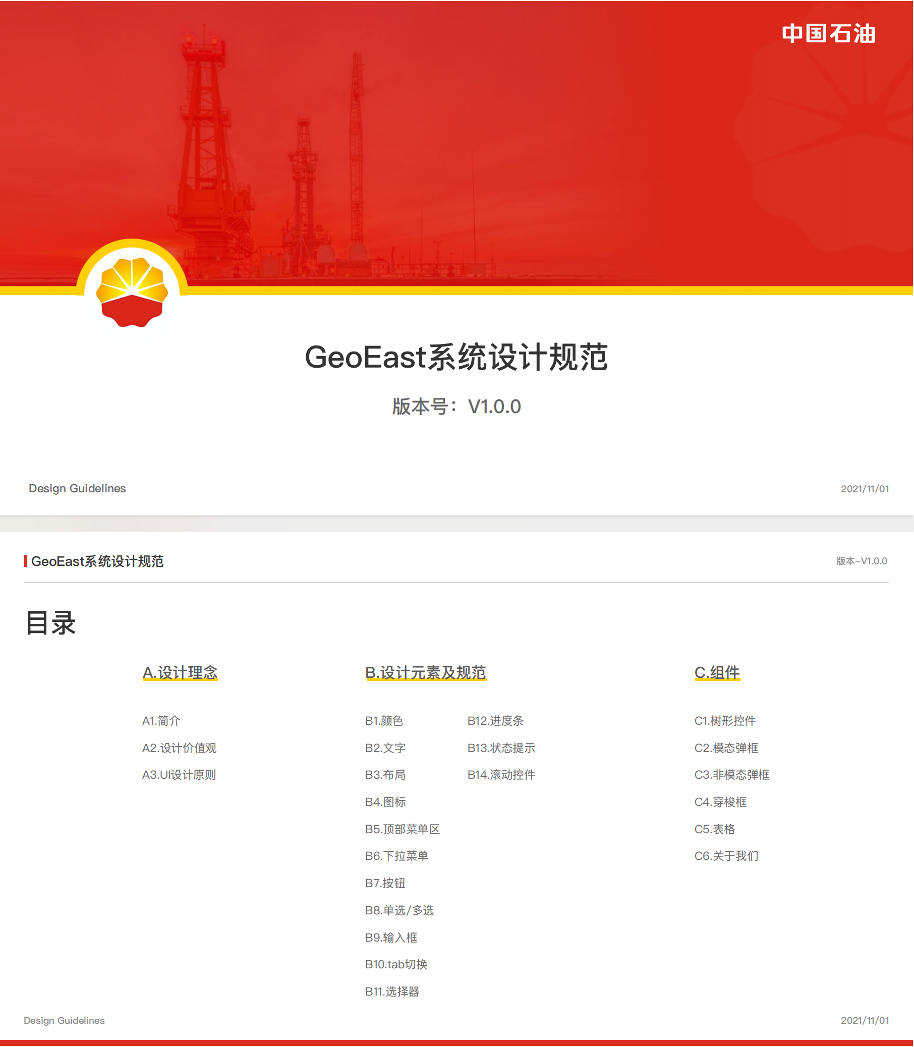 下圖是藍藍設(shè)計給中國石油設(shè)計界面和圖標后,制定的UI規(guī)范。
