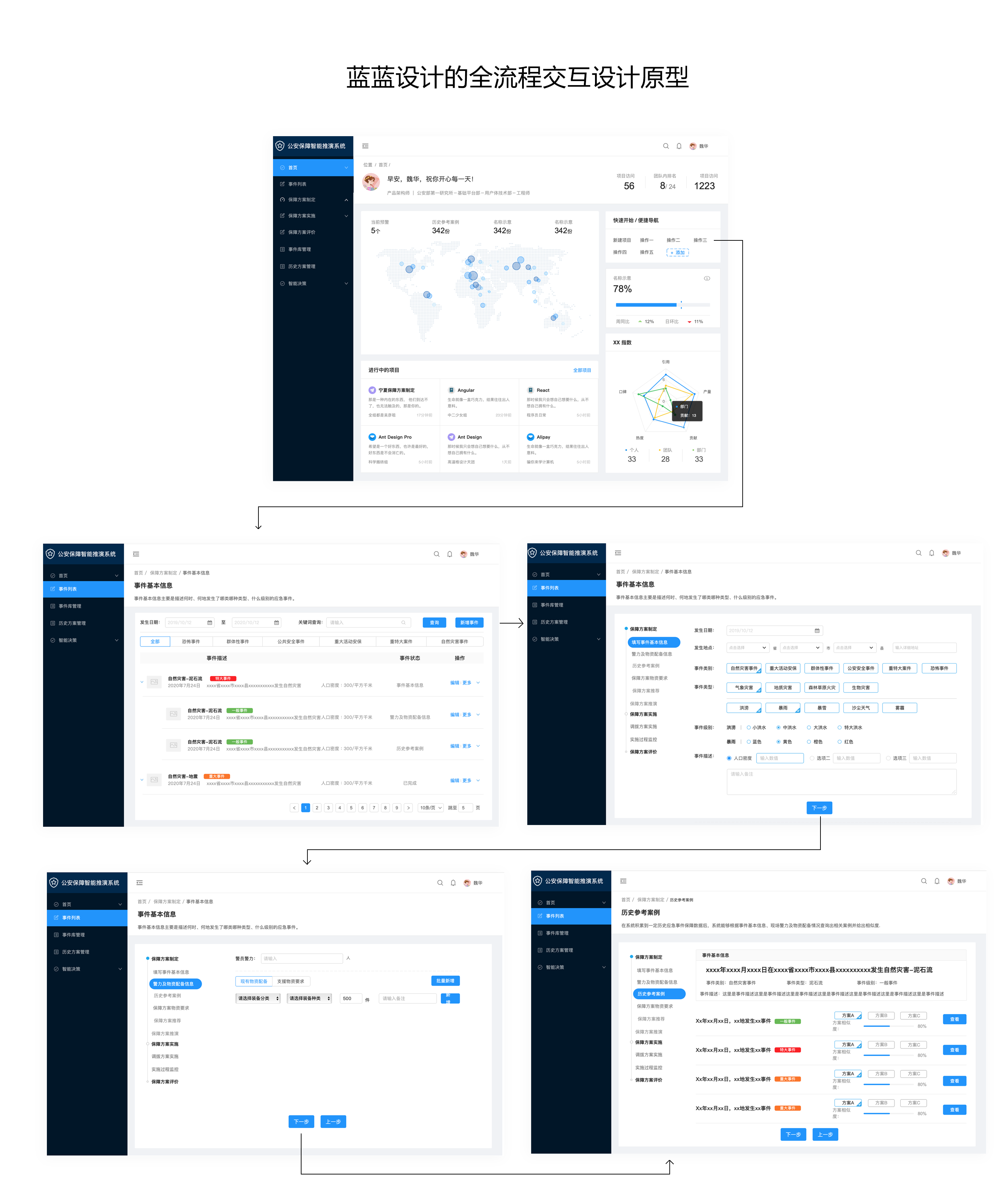 在初步的用戶研究后,設(shè)計(jì)會(huì)先輸出完成所有工作任務(wù)的頁(yè)面交互的低保真原型。在后續(xù)的交互設(shè)計(jì)中還會(huì)持續(xù)融入用戶反饋,不斷打磨頁(yè)面交互原型,以實(shí)現(xiàn)更好的交互友好性和可用性。