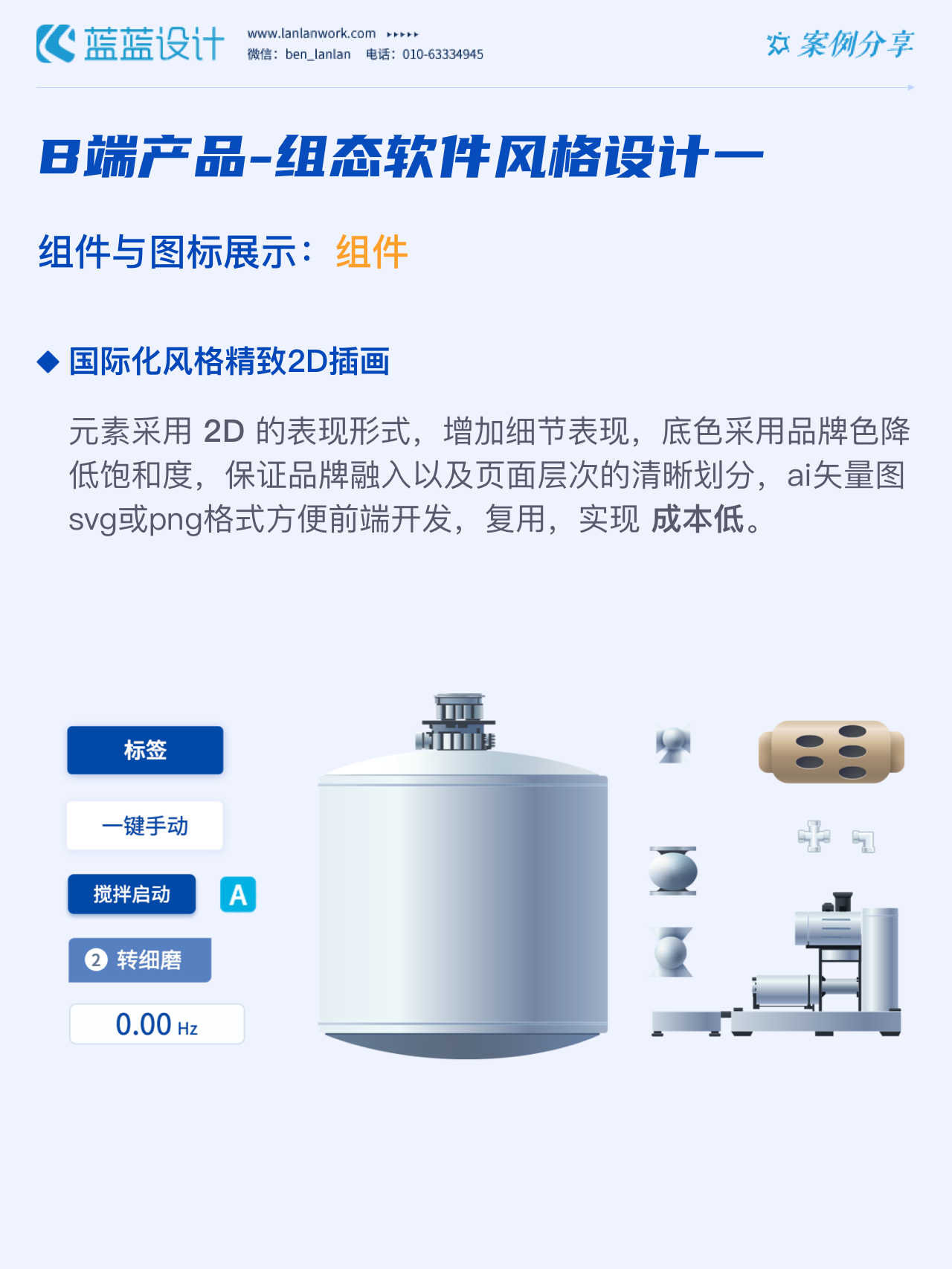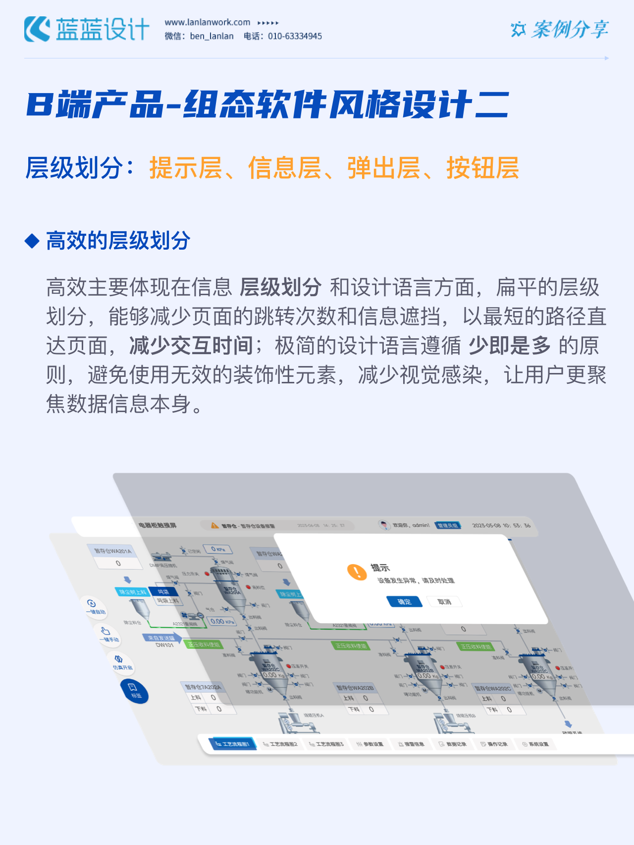 藍(lán)藍(lán)設(shè)計的兩種組態(tài)軟件風(fēng)格都采用符合當(dāng)下審美潮流的2D插畫效果,既保證了視覺效果美觀的同時也降低落地成本,方便后續(xù)的拓展、修改、提升與設(shè)計效率,同時注重用戶的閱讀習(xí)慣,將原功能點重新布局,主次內(nèi)容對比明顯,降低視覺噪音,保證清晰順暢的操作,提升用戶體驗!