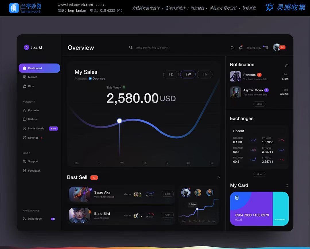 以下是一些黑色卡片式界面設(shè)計(jì)的優(yōu)秀案例: