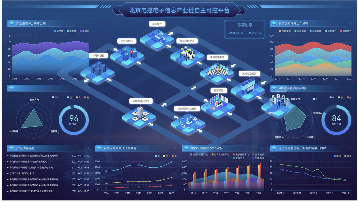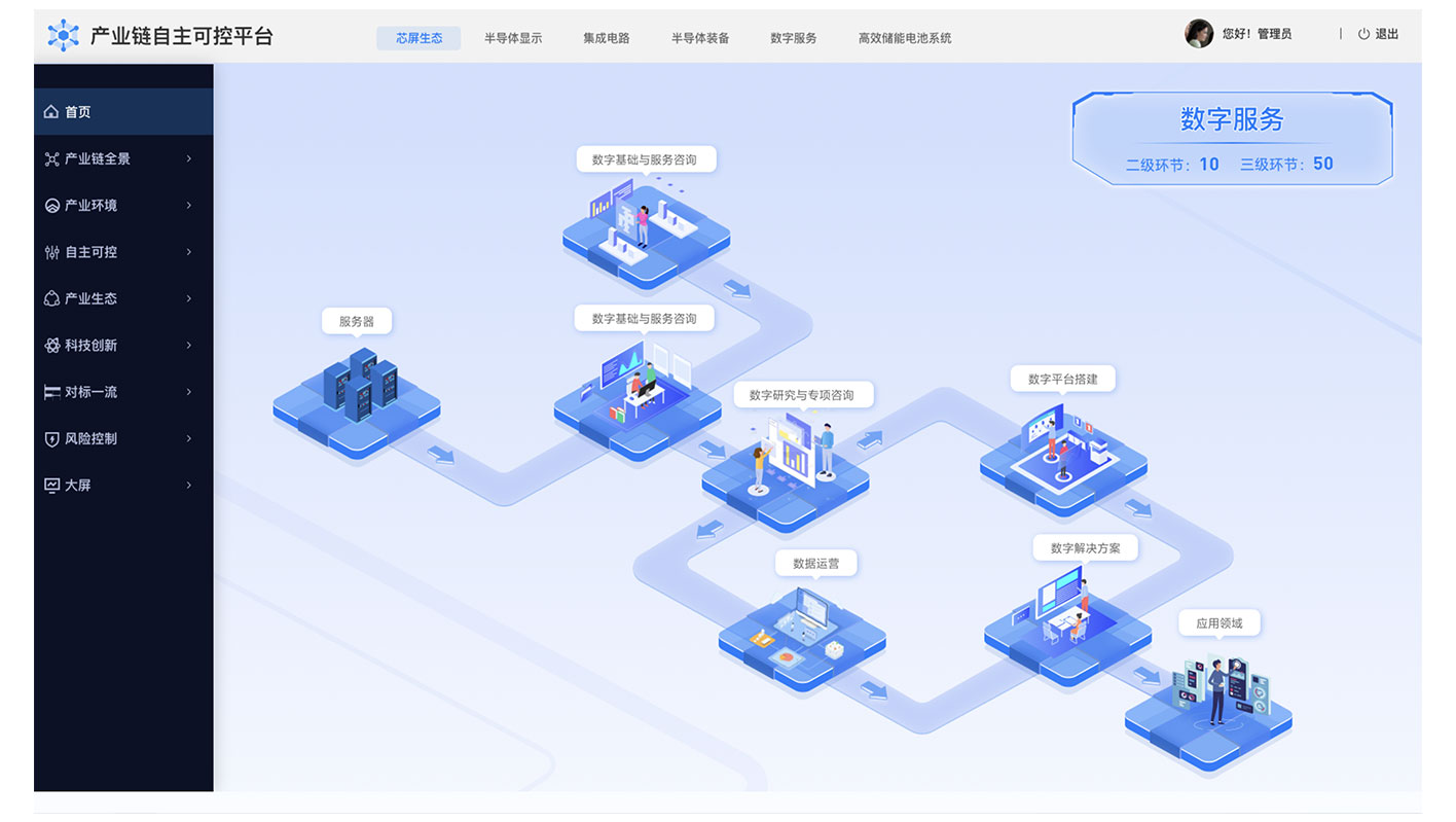 項(xiàng)目背景:產(chǎn)業(yè)鏈自主可控平臺(tái)是指一個(gè)集成了多方參與者的平臺(tái),旨在實(shí)現(xiàn)對(duì)整個(gè)產(chǎn)業(yè)鏈的自主控制和管理。該平臺(tái)通過整合各個(gè)環(huán)節(jié)的資源、技術(shù)和信息,以實(shí)現(xiàn)產(chǎn)業(yè)鏈的協(xié)同發(fā)展和自主創(chuàng)新。過建立產(chǎn)業(yè)鏈自主可控平臺(tái),可以促進(jìn)各參與者間的協(xié)同合作,加強(qiáng)產(chǎn)業(yè)鏈的自主控制能力,提高整體競爭力和創(chuàng)新能力,實(shí)現(xiàn)更加可持續(xù)和穩(wěn)定的發(fā)展。蘭亭妙微團(tuán)隊(duì)首先設(shè)計(jì)了一套高度定制化的動(dòng)態(tài)數(shù)據(jù)可視化儀表板。