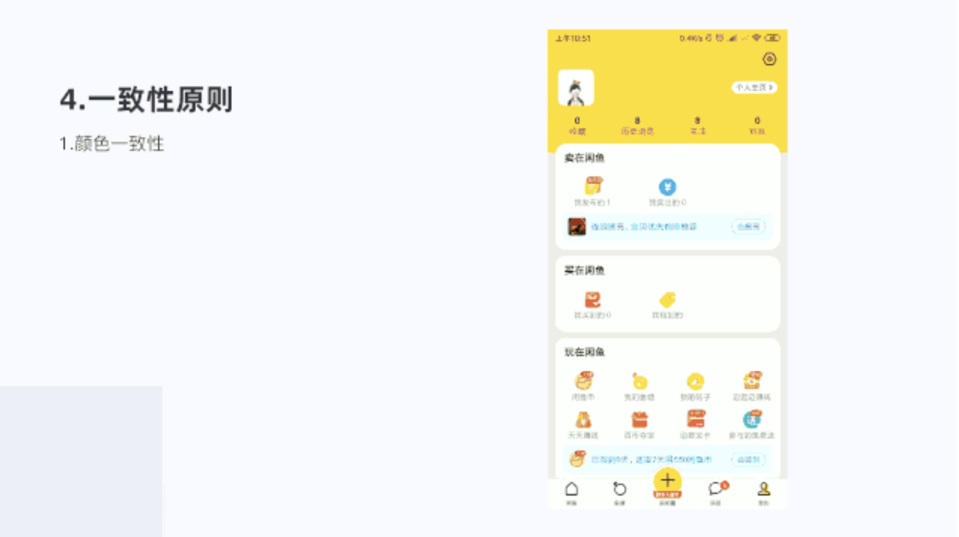 今天我們主要從用戶體驗的部分原則來看閑魚,主要以產(chǎn)品視覺設(shè)計四大原則、交互設(shè)計十大可用性原則、情感化設(shè)計來看閑魚