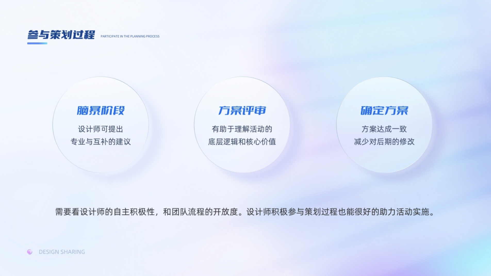 其二、參與策劃過程或者參與方案評審過程中能幫助設(shè)計師更好的理解這個活動的底層邏輯和核心價值;