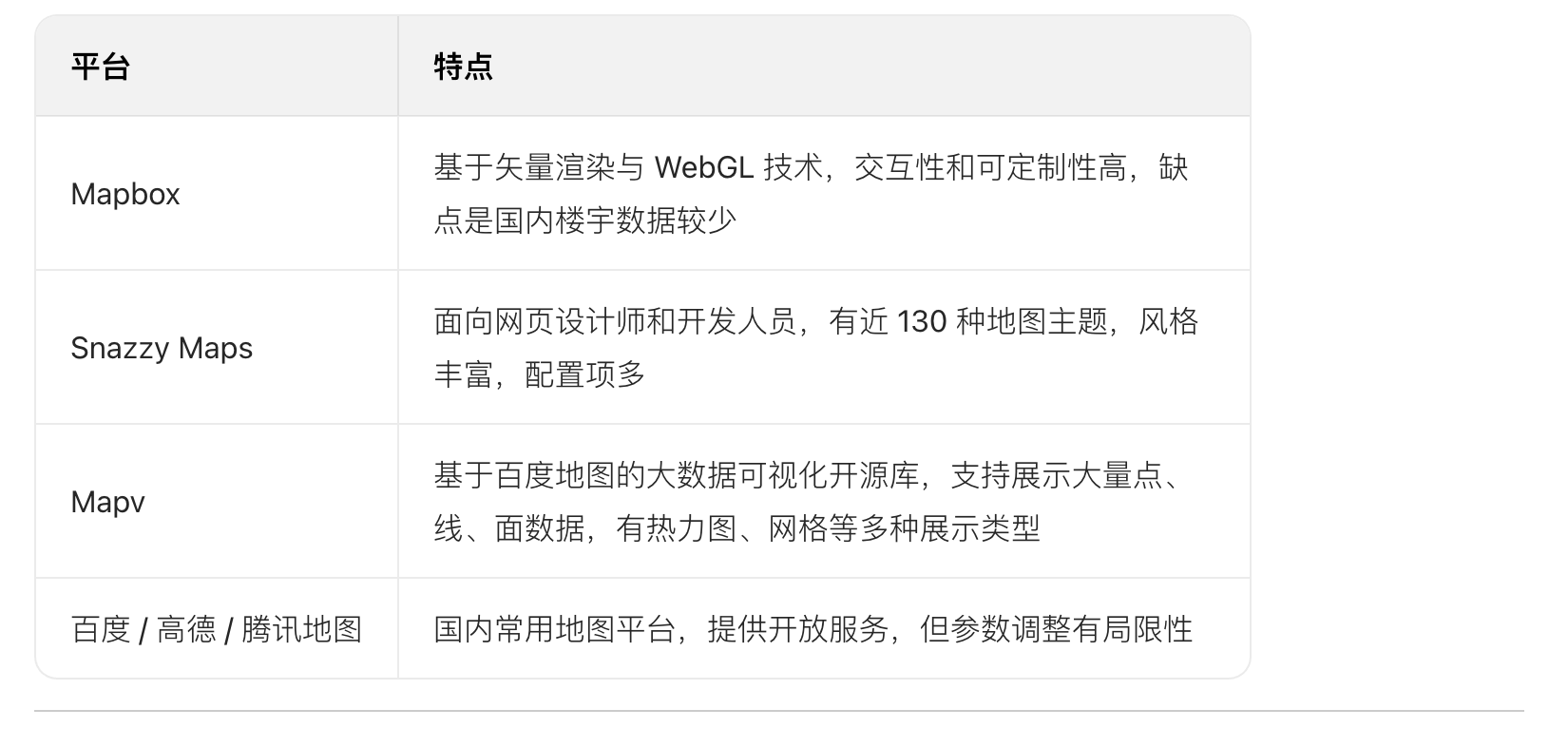 - 技術(shù)能力:可制作 2D、3D 矢量、邊界、瓦片地圖,支持交互、漫游(如點(diǎn)擊下鉆到區(qū)縣),可添加飛線層、氣泡層、熱力層等多層數(shù)據(jù)并設(shè)置不同效果。