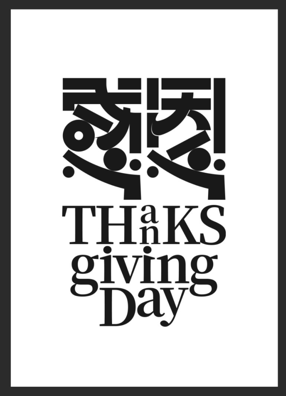 幾何化不代表 “放棄書(shū)寫邏輯”。在 “感恩節(jié)” 的 “感” 字設(shè)計(jì)中,將撇筆做 “由細(xì)到粗” 的過(guò)渡,模擬手寫時(shí) “下筆重、收筆輕” 的力道;在 “恩” 字設(shè)計(jì)中,將內(nèi)部的撇筆與豎筆做 “連筆重組”,貼合手寫時(shí) “筆畫(huà)銜接的慣性”。這種 “幾何結(jié)構(gòu) + 書(shū)寫屬性” 的疊加,讓文字既有幾何的規(guī)整,又有手寫的流暢。