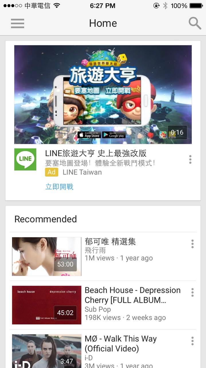 例如 YouTube 應(yīng)用一點開,你就知道這個應(yīng)用的基礎(chǔ)內(nèi)容是什麼了。下面有推薦的內(nèi)容,第一欄的 Home bar 則有明顯的查詢標識,讓用戶可以馬上開始查他想看的影片。