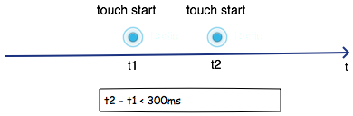 注意雙擊事件中我們檢測(cè)了相鄰兩個(gè) touchstart 事件的位移和時(shí)間間隔。