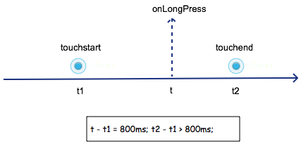 長(zhǎng)按應(yīng)該是最容易分解的手勢(shì)。我們可以這樣分解:在 touchstart 發(fā)生后的很長(zhǎng)一段時(shí)間內(nèi),如果沒(méi)有發(fā)生 touchmove 或者 touchend 事件,那么就觸發(fā)長(zhǎng)按手勢(shì)。