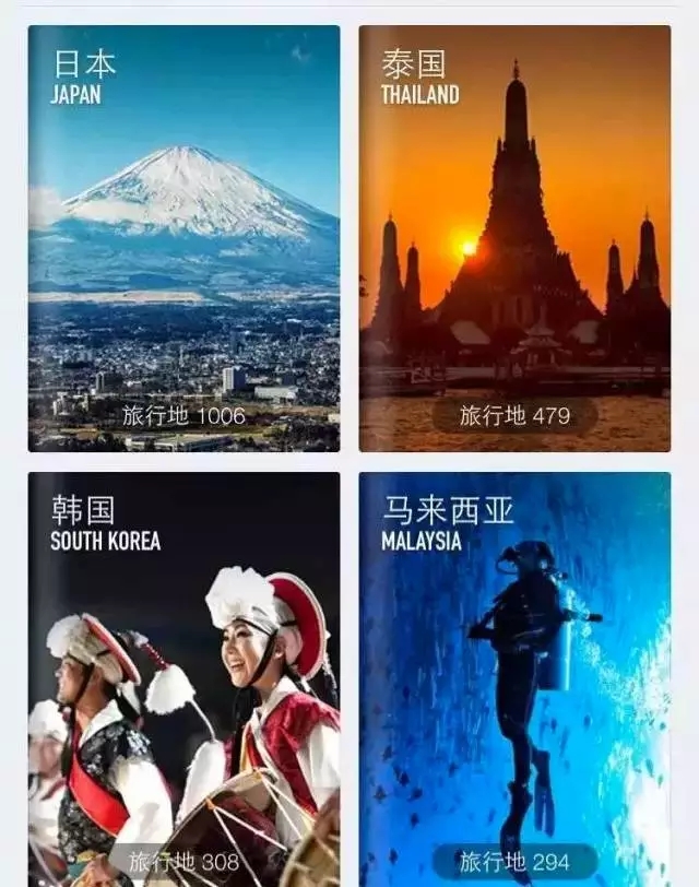 音樂類APP個人專輯和MV采用了不同的圖片尺寸,旅行類APP的目的地和和攻略展示方式也有所區(qū)分: