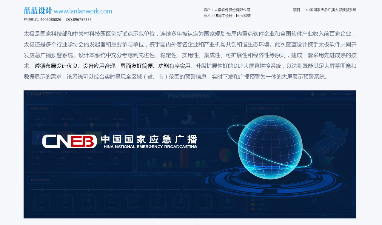 北京藍(lán)藍(lán)設(shè)計(jì)作品: 太極集團(tuán)承接的中央臺(tái)應(yīng)急指揮中心大屏