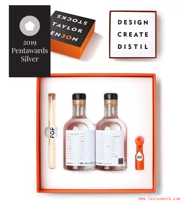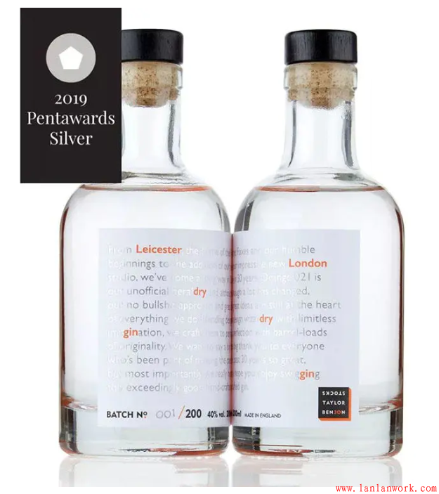 今年飲料類的「鉑金獎(jiǎng)」被來(lái)自英國(guó)愛(ài)丁堡的LIND & LIME GIN獲得。包裝設(shè)計(jì)由蘇格蘭的創(chuàng)意團(tuán)隊(duì) Contagious 操刀,酒瓶設(shè)計(jì)的靈感源于品牌商The Port of Leith Distillery所在的Leith 地區(qū)海岸上具有歷史意義的工業(yè)建筑以及老窯.