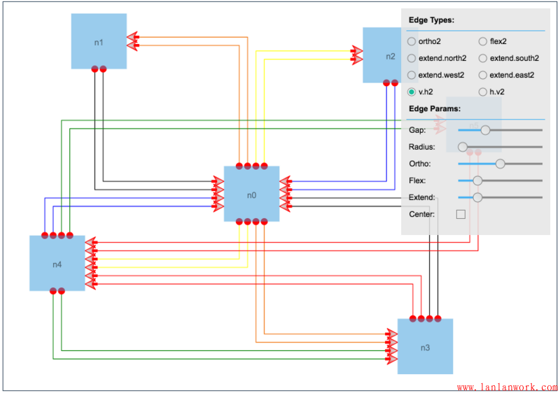 對(duì)于連線 Edge,HT 還提供了自定義走向的擴(kuò)展機(jī)制,并提供了相應(yīng)的預(yù)制擴(kuò)展連線類型插件,參見《HT for Web 連線類型手冊(cè)》http://www.hightopo.com/guide...