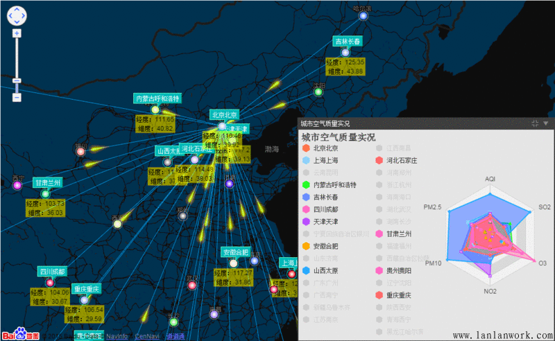 HT 的拓?fù)鋱D的節(jié)點(diǎn)位置都是邏輯坐標(biāo),并非 GIS 的地理信息經(jīng)緯度坐標(biāo),但這并不妨礙 HT 的拓?fù)鋱D可以和百度地圖、GoogleMap、OpenLayers 等第三方 GIS 地圖引擎進(jìn)行整合呈現(xiàn),參見《百度地圖、ECharts整合HT for Web網(wǎng)絡(luò)拓?fù)鋱D應(yīng)用》,該文將 HT 拓?fù)鋱D、百度地圖、ECharts、HT 連線流動(dòng)和面板等插件做了個(gè)綜合的呈現(xiàn)展示效果:http://www.hightopo.com/demo/...