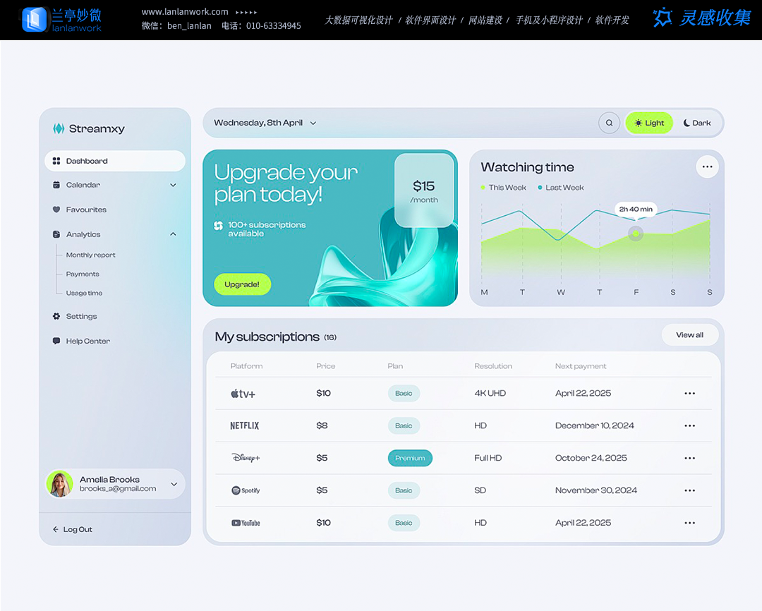 蘭亭妙微(www.ty-hotel.net )是一家專注而深入的界面設(shè)計(jì)公司,為期望卓越的國(guó)內(nèi)外企業(yè)提供卓越的大數(shù)據(jù)可視化界面設(shè)計(jì)、B端界面設(shè)計(jì)、桌面端界面設(shè)計(jì)、APP界面設(shè)計(jì)、圖標(biāo)定制、用戶體驗(yàn)設(shè)計(jì)、交互設(shè)計(jì)、UI咨詢、高端網(wǎng)站設(shè)計(jì)、平面設(shè)計(jì),以及相關(guān)的軟件開(kāi)發(fā)服務(wù),咨詢電話:01063334945。我們建立了一個(gè)微信群,每天分享國(guó)內(nèi)外優(yōu)秀的設(shè)計(jì),有興趣請(qǐng)加入一起學(xué)習(xí)成長(zhǎng),咨詢及進(jìn)群請(qǐng)加藍(lán)小助微信ben_lanlan